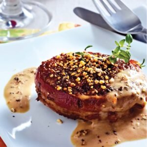 Hertenbiefstuk met kastanje-champignon-pepersaus